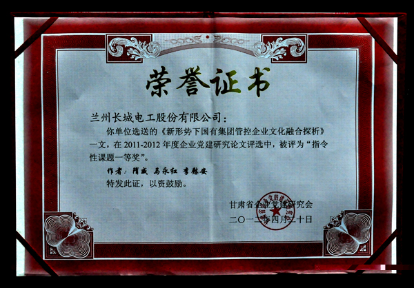 會議同期,甘肅省屬暨中央在甘企業(yè)創(chuàng)先爭優(yōu)活動領導小組召開會議并下發(fā)《關于表彰省屬暨中央在甘企業(yè)創(chuàng)先爭優(yōu)理論研討優(yōu)秀論文的決定》(甘國資創(chuàng)組[2012]9),對創(chuàng)先爭優(yōu)理論研討優(yōu)秀論文進行了表彰。長城電工系統(tǒng)三篇論文受到表彰。