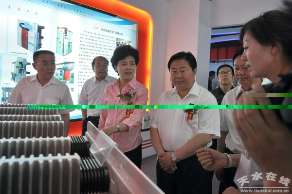 儀式結(jié)束后,參加開展儀式的領(lǐng)導(dǎo)走進(jìn)天水裝備制造業(yè)精品展覽館。在市委書記馬世忠,市委副書記、市長(zhǎng)王銳,市委副書記、市政協(xié)主席楊維俊等市領(lǐng)導(dǎo)的陪同下,省委常委、副省長(zhǎng)咸輝來(lái)到長(zhǎng)城電工展覽臺(tái)前對(duì)室內(nèi)展廳展示的高低壓開關(guān)設(shè)備、高低壓電器元件等產(chǎn)品進(jìn)行了詳細(xì)察看。她一邊聽取講解員的講解,一邊詳細(xì)詢問(wèn)了解產(chǎn)品。陪同的市委書記馬世忠向咸輝副省長(zhǎng)簡(jiǎn)要介紹了長(zhǎng)城電工及情況市場(chǎng)開拓情況。