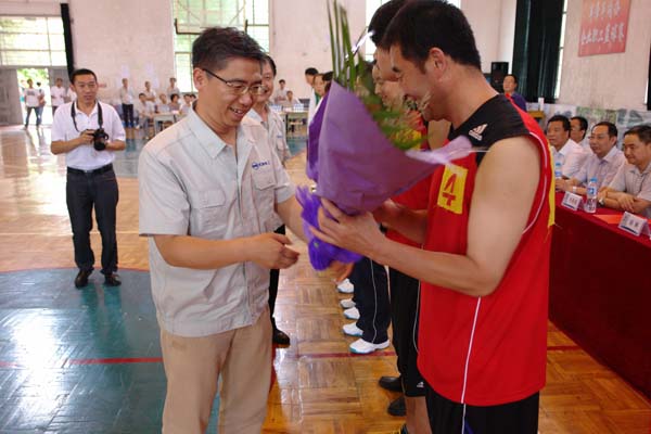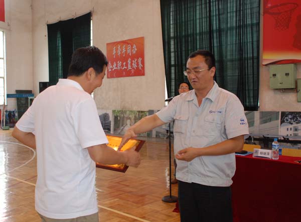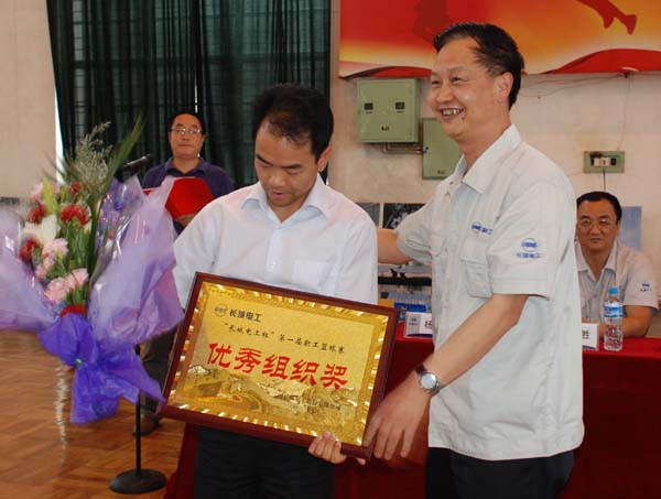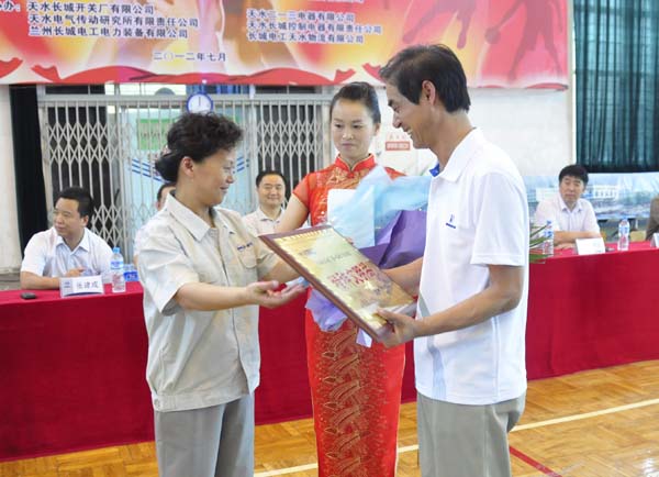 (長(zhǎng)城電工黨委書(shū)記楊春山為獲獎(jiǎng)代表隊(duì)頒獎(jiǎng))
