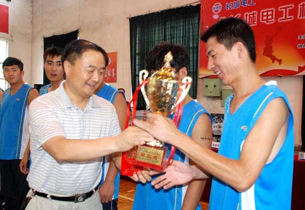 (長(zhǎng)城電工總經(jīng)理張希泰為獲獎(jiǎng)代表隊(duì)頒獎(jiǎng))