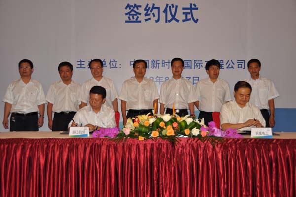 會上,長城電工董事長楊林、中國新時代國際工程公司總經理郝小更分別講話。長城電工總經理張希泰與中國新時代國際工程公司副總經理黃以武簽約。