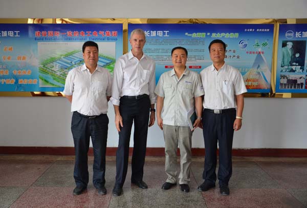 公司總工程師張建成和長城電工電力裝備公司總經(jīng)理石立峰陪同客人參觀了長城電工長開廠公司、二一三公司、天傳所公司和產(chǎn)業(yè)園。