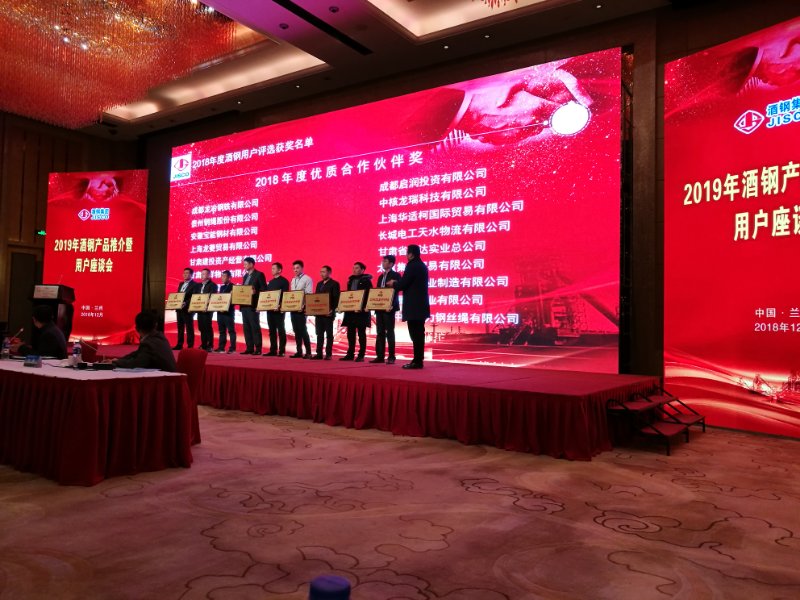 12月13日,酒鋼在蘭州組織召開了“新產(chǎn)品推介暨用戶座談會”,酒鋼股份公司部分領(lǐng)導(dǎo)和來自全國300余家代理商以及用戶代表參加了會議。會上公司獲得酒鋼 “2018年度優(yōu)質(zhì)合作伙伴獎”。